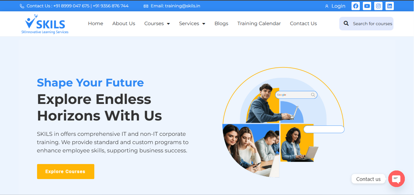 SKILS is a professional corporate training and consulting company offering end-to-end services across IT and non-IT sectors. Their clientele includes global brands such as Tech Mahindra, Accenture, and Atos. The objective was to create a clean, modern, and scalable website that showcases their training solutions, service offerings, founder profiles, and industry credibility.